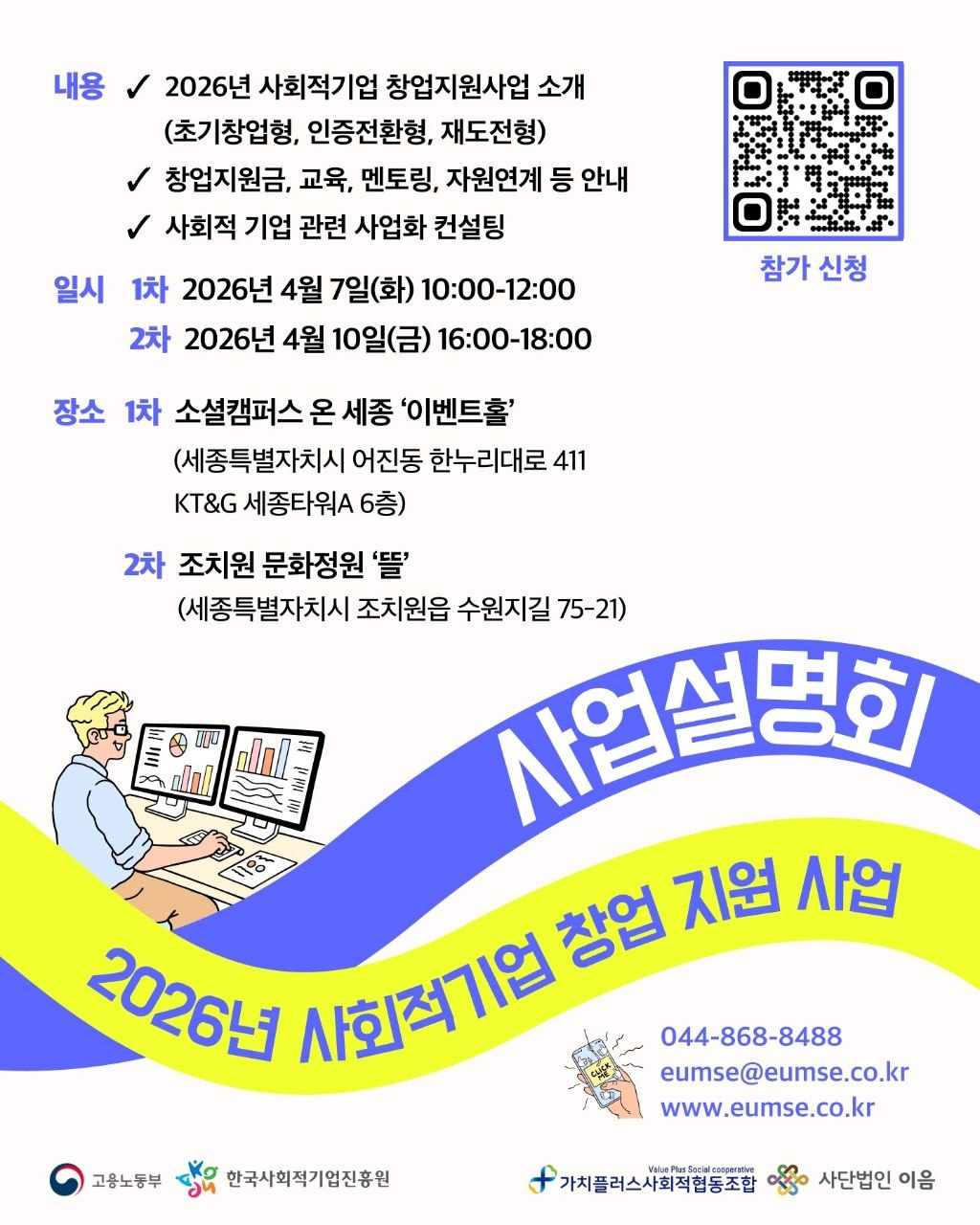 한국사회적기업진흥원에서 3.30일자로 2026년 사회적기업 창업지원사업 창업팀 모집 공고가 올라왔습니다!