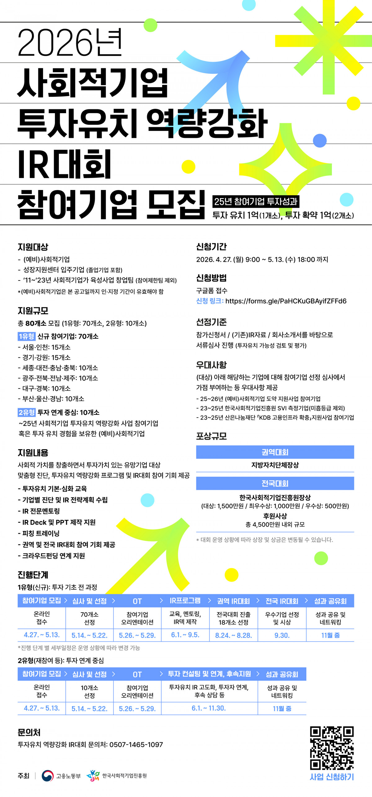 1. 2026년 사회적기업 투자유치 역량강화 IR대회 사업 신청 바로가기
