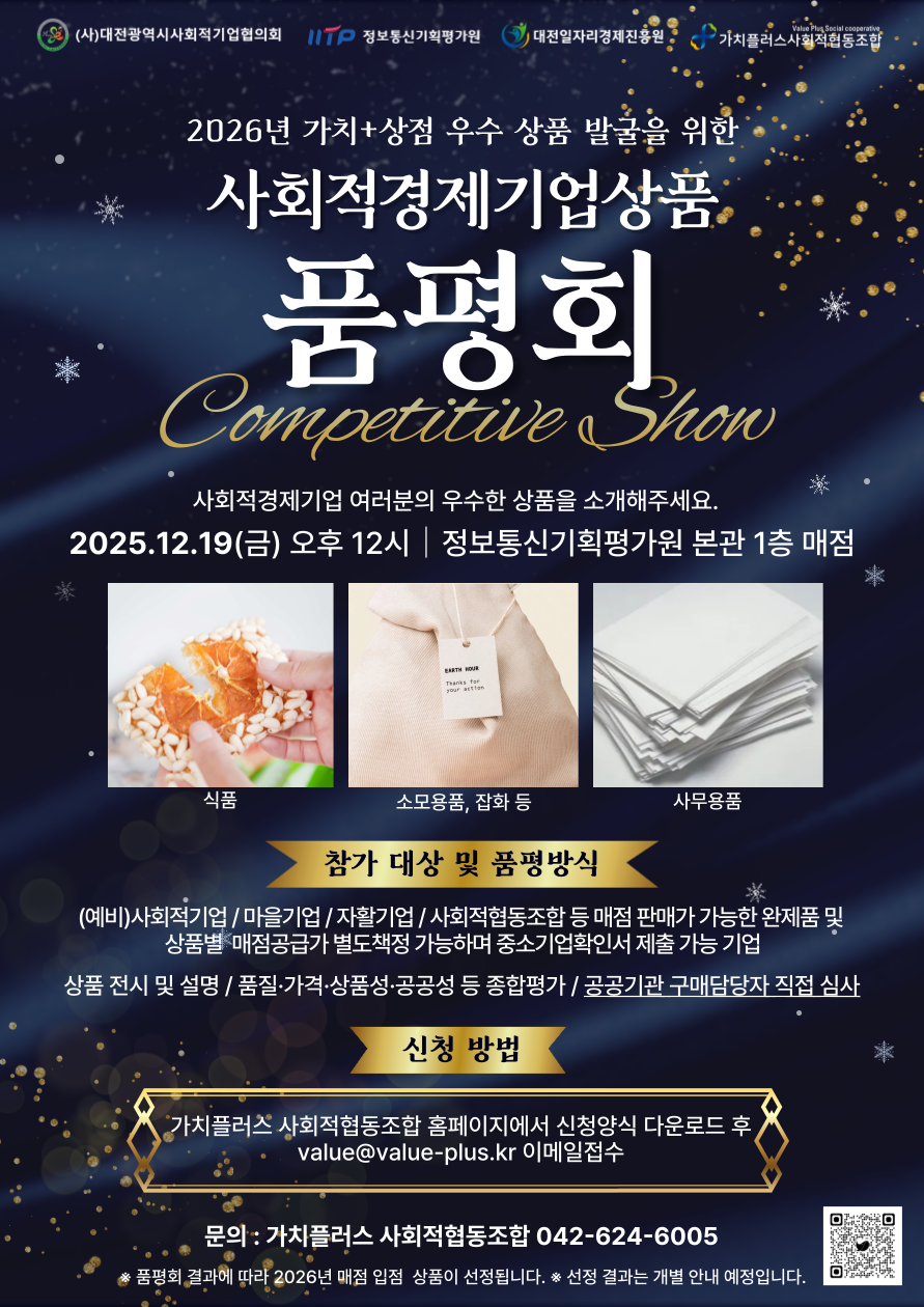 [가치+상점] 2026년 가치+상점 우수상품 발굴을 위한 사회적경제기업상품 품평회 참여 기업 모집
