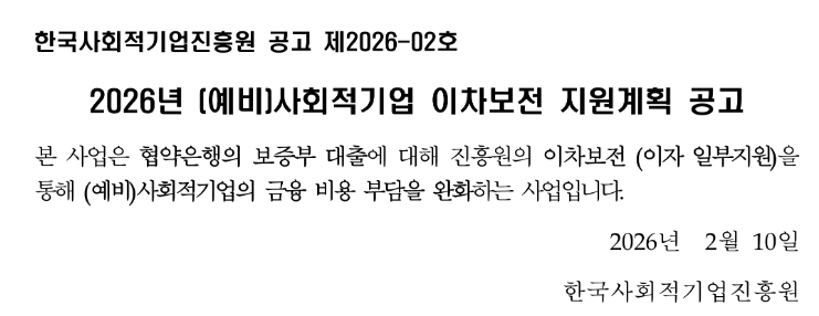 (예비)사회적기업을 대상으로 신규 운전자금 대출에 대한 이자 차액을 지원해드리는 사업이 있어 공유드립니다!