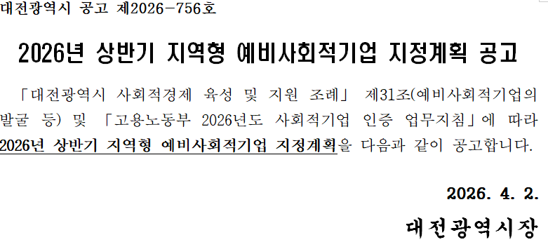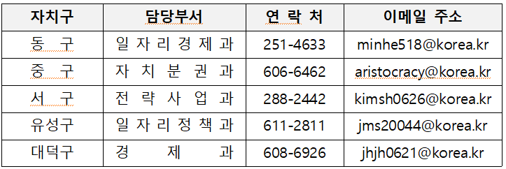 *지정 문의: 대전광역시 일자리경제정책과 ☎ 042-270-4581