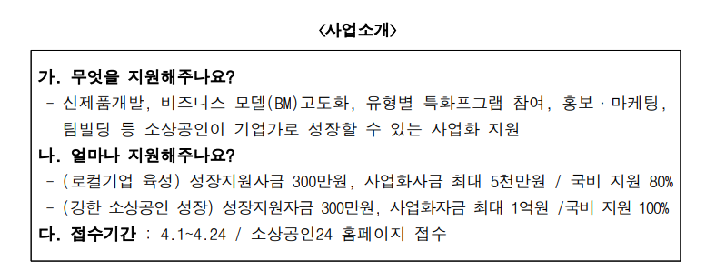 접수기간 : ~ 4/24 / 소상공인24 홈페이지 접수